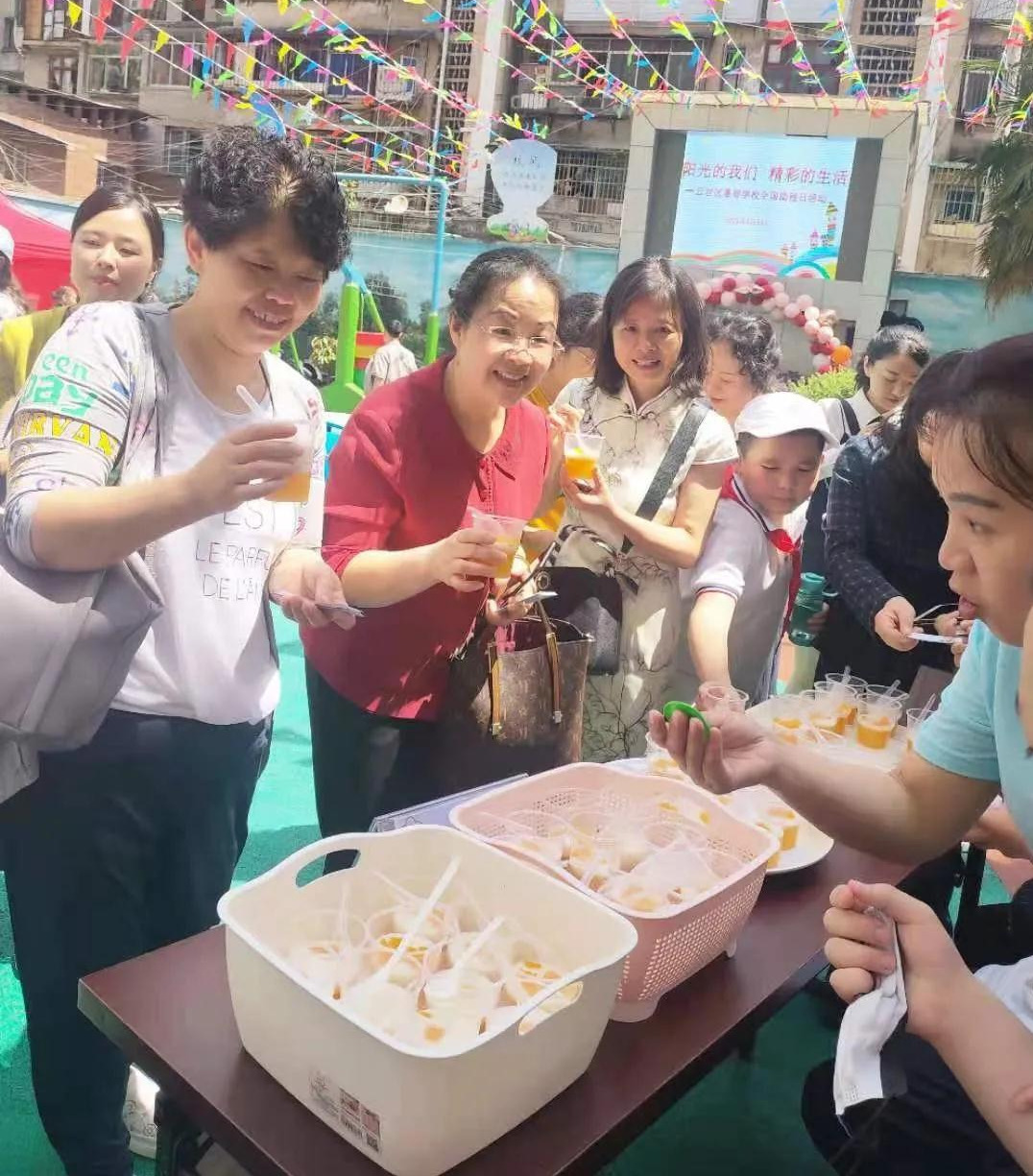 走进学生活动,感受孩子们的成果。惠智学校通过搭建特殊儿童交流展示的平台,让学生展示自己的厨艺和制作的美食并进行售卖,锻炼学生的沟通交流能力和融入社会的能力。活动开始,梁校长介绍了活动的内容,感谢来宾们的关心。张涤主委代表九三电大支社和科研处向老师、同学和家长们表示亲切问候,赞扬同学们的手工、鼓励同学们的精神、感谢老师家长的付出,并表示今后将继续关爱这些需要特别关照的孩子们。随后,用学校发的模拟购物券购买学生们制作的各种美食,并和这些孩子不断进行沟通和交流,鼓励孩子们努力学习,不断提高生活自理能力,让家长和老师们放心。