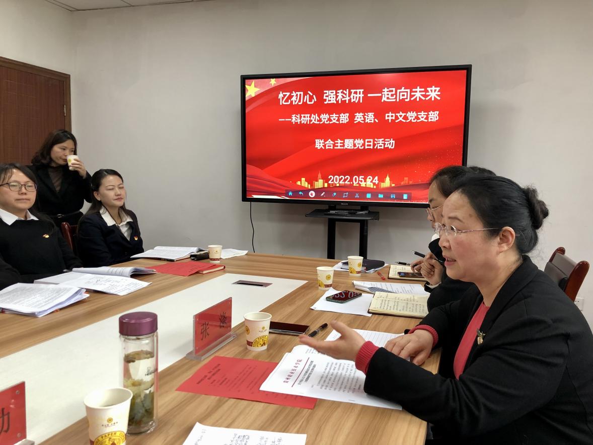 为推动科研处支部党建工作创新,坚持围绕中心、服务大局,把抓党建与促发展有机结合,充分发挥党外知识分子的智慧和力量,切实解决教师在教学科研工作中的难点问题,5月24日下午,科研处党支部联合马克思主义学院(公共基础部)英语、中文党支部开展了“忆初心、强科研,一起向未来”主题党日活动。活动特别邀请了省政协委员、我校九三学社委员、科研处处长张涤教授对青年教师教学科研能力提升进行指导。