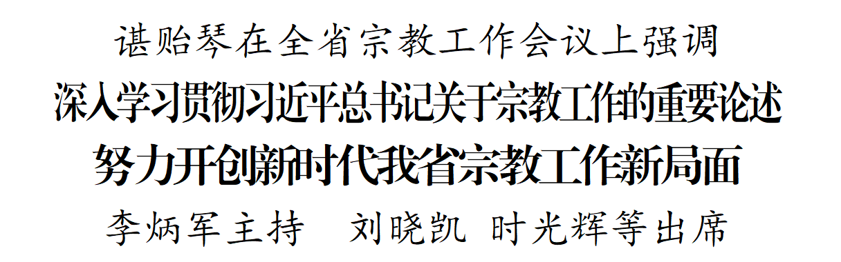 谌贻琴指出,党的十八大以来,习近平总书记创造性提出一系列关于宗教工作的新理念新举措,科学回答了新时代怎样认识宗教、怎样处理宗教问题、怎样做好党的宗教工作等重大理论和实践问题,形成了新时代党的宗教工作理论和方针政策,为我们做好新时代宗教工作提供了根本遵循。全省各级各部门要深刻认识做好宗教工作在党和国家工作全局中的重要性,从衷心拥护“两个确立”、忠诚践行“两个维护”的政治高度,完整、准确、全面领会和贯彻新时代党的宗教工作理论和方针政策,深刻理解核心要义、精神实质、丰富内涵和实践要求,做到学思用贯通、知信行统一。