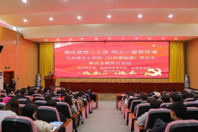 本次主题党日活动以“理论宣传二人讲”的方式开展,通过1名专业教师讲理论、1名先进典型讲实践的“1+1”二人互动的方式,宣讲党的二十大精神、全国两会精神的重要内容,让宣讲更接地气、冒热气、添生气,更加“声”入人心。