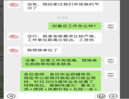 商业与贸易学院近三年来毕业生初次就业率分别为2020年79.62%;2021年86.86%;2022年就业率88.50%。虽然从数据上来看我院每年的就业率有所增长,但是毕业生在就业过程中仍存在一些问题。商业与贸易学院总结近几年的就业存在的困难和问题,联合统战人士对学生进行分类指导,分为就业类和学历提升类。学历提升类由教师组成专业本培训团队对学生进行培训,就业类由老师与学生进行结对帮扶,例如海外留学归来教师杨哲丞老师。就业帮扶对象为吴培同学,通过线上时常交流了解吴培当前实习情况,以及为什么不愿意就业的原因,发现同学们在实习就业期间普遍遇到的困难都是工作距离远,工资比较低等,杨哲丞老师提出了解决办法,希望学生摆正好心态,努力提高自身能力,老师也帮忙对接合适企业。