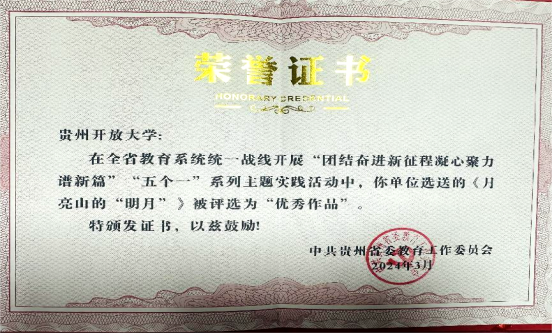 近日,省委教育工委印发《省委教育工委关于表彰2023年度“团结奋进新征程 凝心聚力谱新篇”“五个一”系列主题实践活动成果的通知》,我校荣获两项表彰。其中,由信息工程学院选送的基层统战工作案例《五金课堂育新人 铸牢中华民族共同体意识》荣获三等奖,由艺术与设计学院选送的统战文艺汇演作品《月亮山的“明月”》荣获优秀作品。此次获奖,是对学校统战工作的又一次肯定和鼓励。